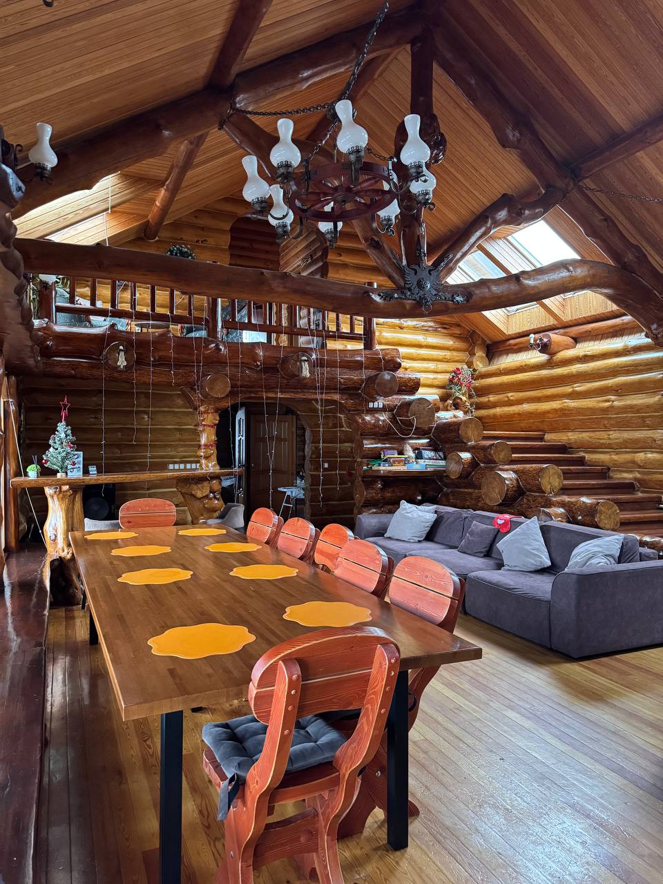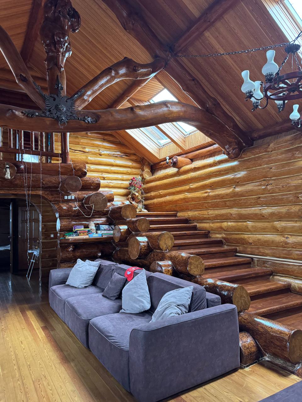 2️⃣Второй этаж занимают две уютные спальни с двуспальными кроватями. В каминной зоне два двуспальных раскладывающихся дивана и два кресла. Санузел с душевой кабиной. Имеются две раскладушки. Каминная зона, включает: большой красивый камин (только для фотосессий), телевизор с выходом в интернет и игровой приставкой Сони Плейстейшн 4 Про! Хорошая акустическая система КАРАОКЕ. Большой дубовый стол на 15 -17 человек. Барная стойка с освещением! Отдельная детская зона с играми. Большая красивая дубовая лестница с выходом на третий этаж! Отличное место для фотосессии!