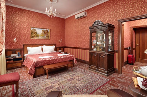 Комфортабельный просторный светлый номер, площадью 25 м. В номере спальный гарнитур, состоящий из большой двуспальной кровати с ортопедическим матрасом, прикроватные тумбы, столик 19-го века, кресло-кровать, шкаф купе для одежды, рабочие место. В каждом номере данной категории имеется кондиционер, телефон, ЖК телевизор 40 дюймов, холодильник и бесплатный Wi-Fi. Ванная комната оснащена: сантехника, душ, набор косметики, халат, тапочки, фен, косметическое зеркало. В номере проводится ежедневная уборка.